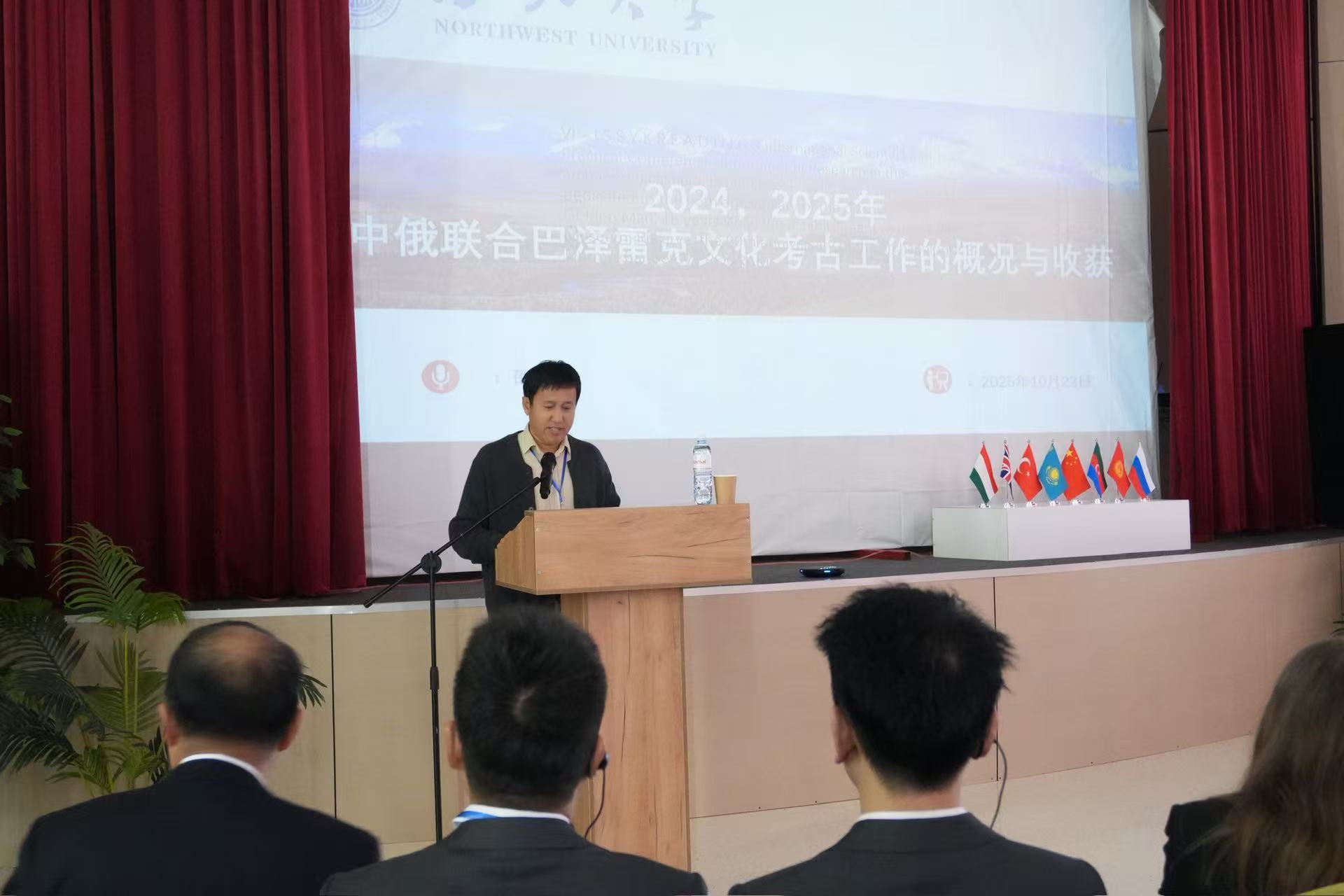 会上,邵会秋教授作了“2024-2025年中俄联合考古考察工作成果”的主题发言,系统介绍了中心近两年在俄罗斯阿尔泰地区开展的考古调查与发掘工作。会议期间,还受邀访问了阿里-法拉比哈萨克斯坦国立大学,并作题为“从天山到阿尔泰山——早期铁器时代的文化格局与交流”的学术报告。报告中主要阐述了天山和阿尔泰地区的早期铁器时代文化格局,以及哈萨克斯坦东部、中国新疆和俄罗斯阿尔泰等区域内的文化交流与互动。报告引起了强烈反响,在座谈交流环节该校历史学系师生围绕相关学术观点展开了热烈讨论,相关学者积极表达了开展合作研究的兴趣和意向。